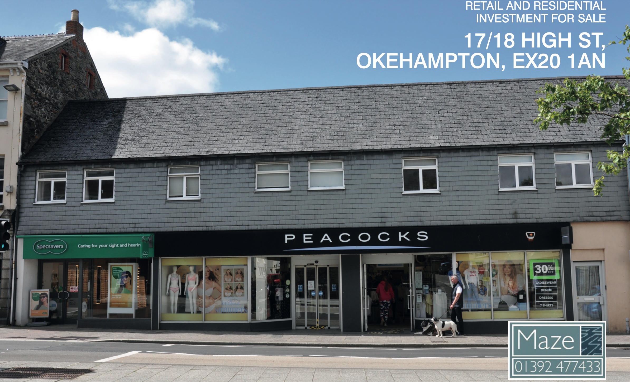 The property comprises 2 retail units with 2 independently accessed flats above and a large car park to the rear. The large retail unit let to Peacocks extends to 6,423 sq ft overall and the smaller unit let to Specsavers is 1,288 sq ft.